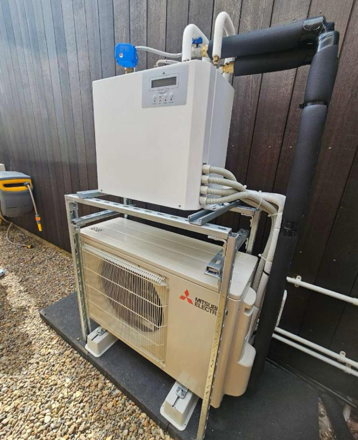 After removing the existing gas unit at the side of the building and successfully capping the gas, ACE Plumbing and Heating utilised the water pipes to connect to a new 300L external cylinder and AquaCore Hot Water Heat Pump nearby.